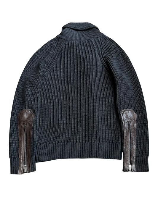 Gucci by Tom Ford AW2003 Leather Panel Trim Drivers Knit Jacket