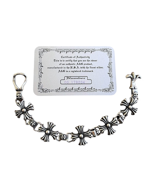 A&G Rock 925 Sterling Silver Cross Link Fleur De Lis Bracelet