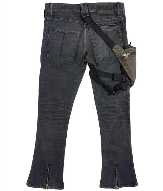 L.G.B (Le Grand Bleu) bondage bag zip flare denim
