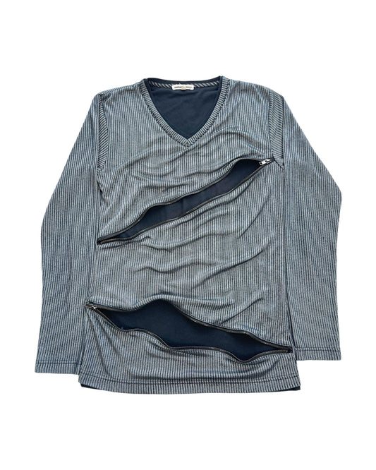 Semantic Design Striped Zipper Layer Long-Sleeve Top