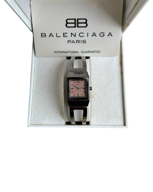 Balenciaga SS99 Rectangular Pink Dial Open Bracelet Quartz Watch