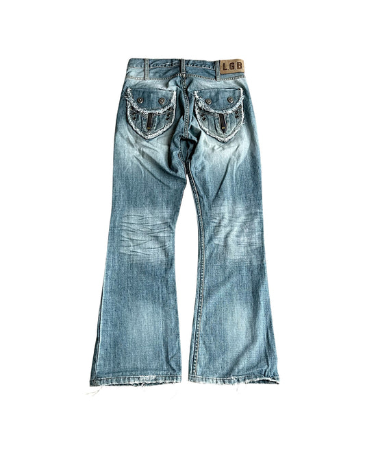 L.G.B. LAZY-2 Bootcut Flare Distressed Repair Denim Jeans
