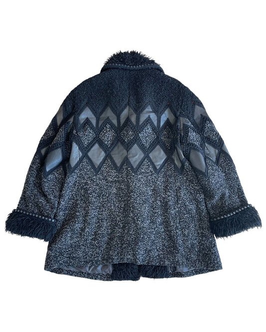 Yoshiyuki Konishi 2000s Monster Fur Leather Diamond Pattern Wool Coat