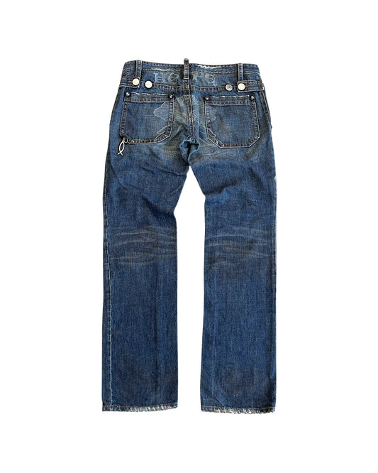 Dsquared2 2000s Tattoo Prints Leather Detail Denim Jeans