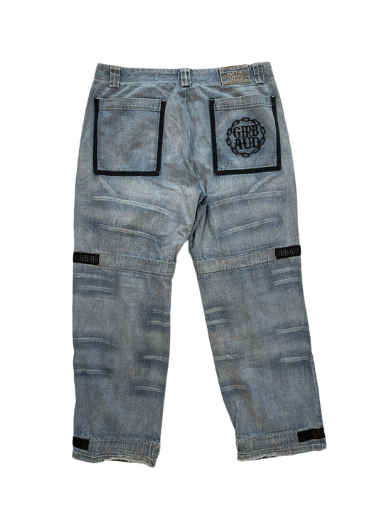 2000s Marithé + François Girbaud Chain Embroidery Cargo Velcro Strap Denim Pants