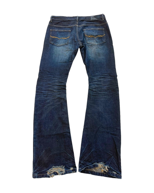 FUGA Distressed Repair Stitch Newspaper Bootcut Denim