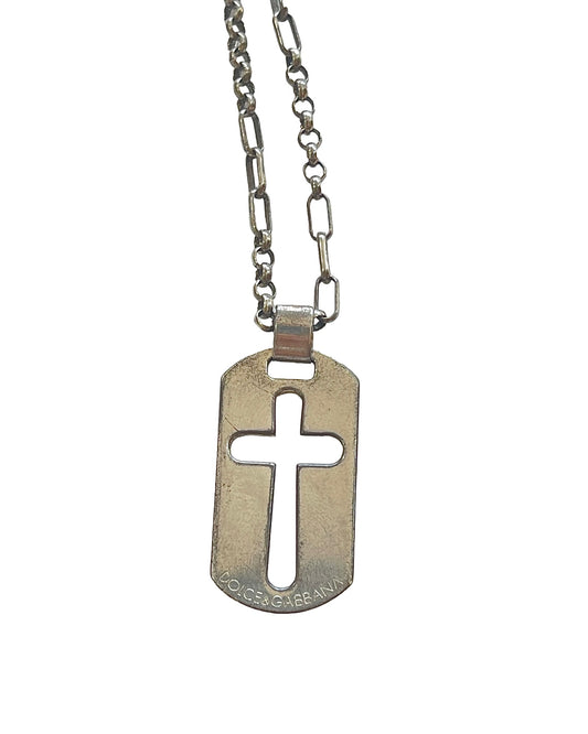 Dolce & Gabbana .925 Sterling Silver Gem Stones Cross Dog Tag Necklace
