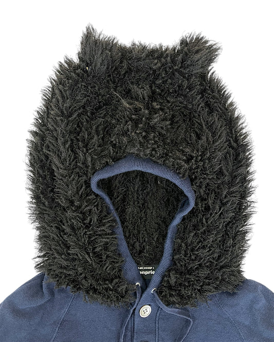 Mercibeaucoup Fuzzy Fur Bear Head Ears Hooded Button Sweatshirt