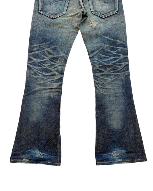 2000s Led Rechwe x Lee Riders Distressed Repair Flare Denim