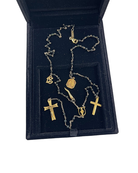 Dolce & Gabbana Gold Alloy Black Jade Cross Rosary Charms Necklace