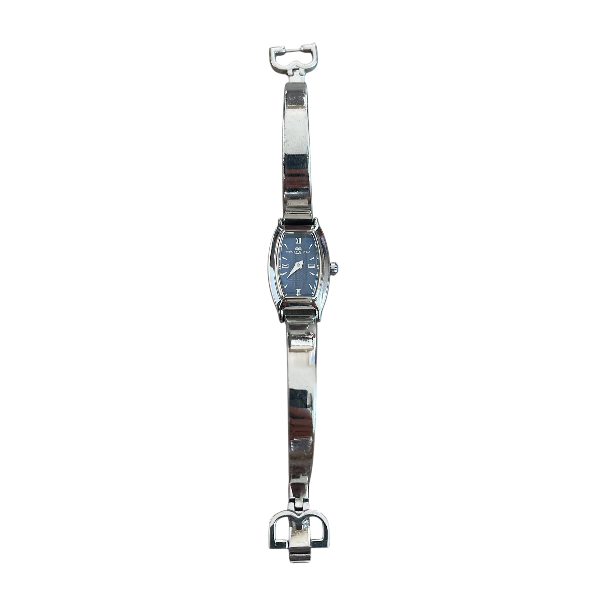 Balenciaga Vintage Blue Dial Bangle BB Clasp Silver Quartz Watch