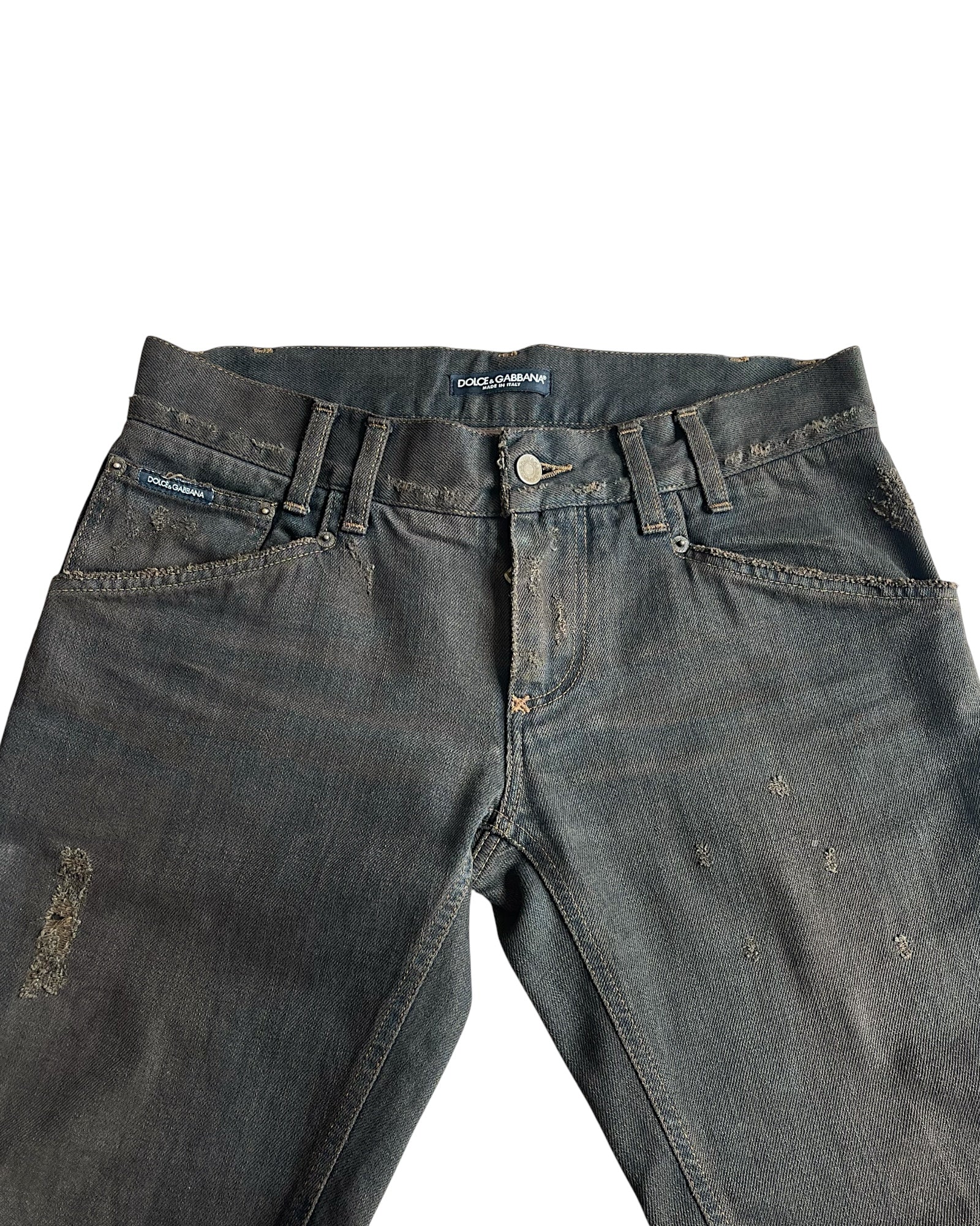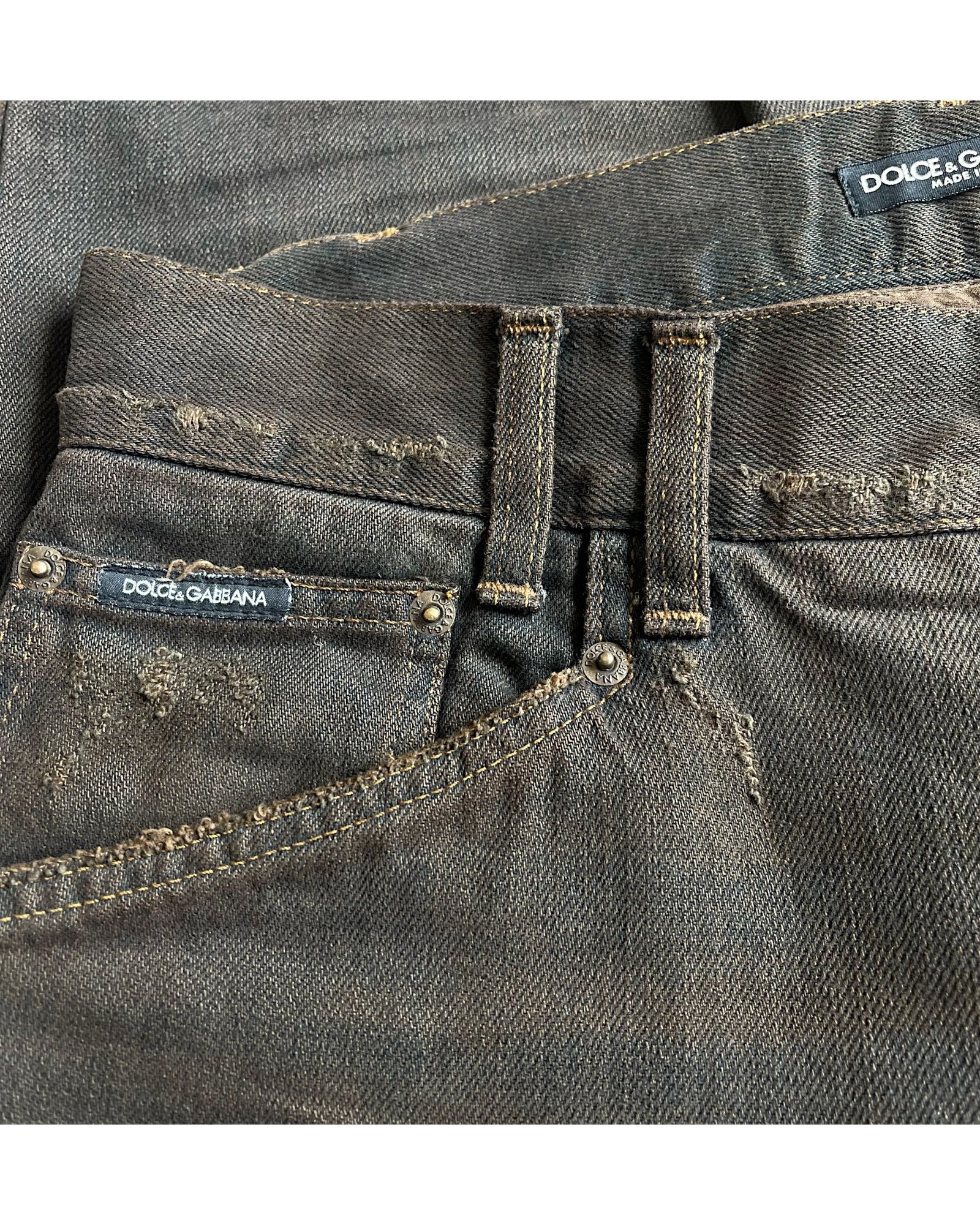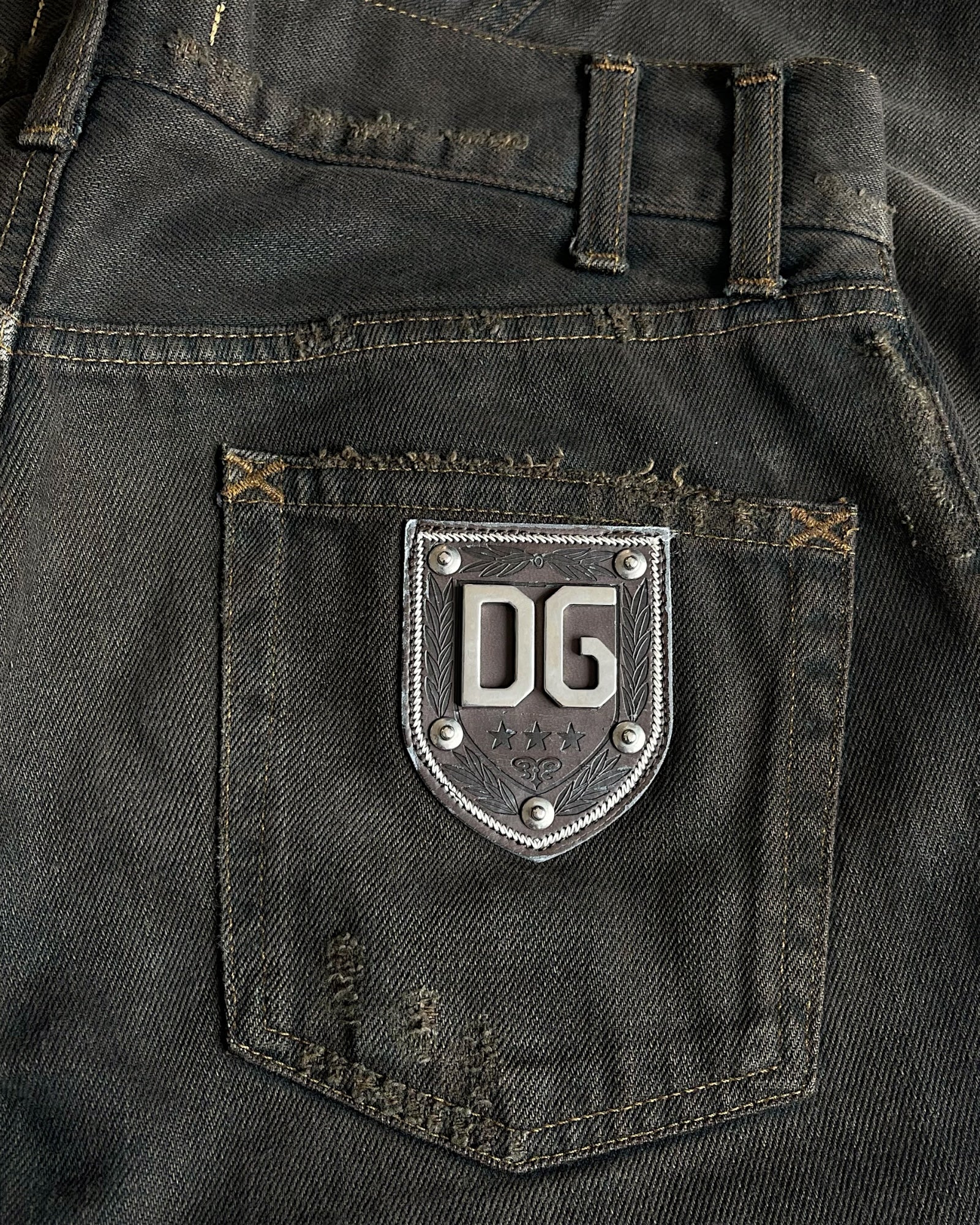 Dolce & Gabbana Mud Wash DG Emblem Distressed Denim Jeans