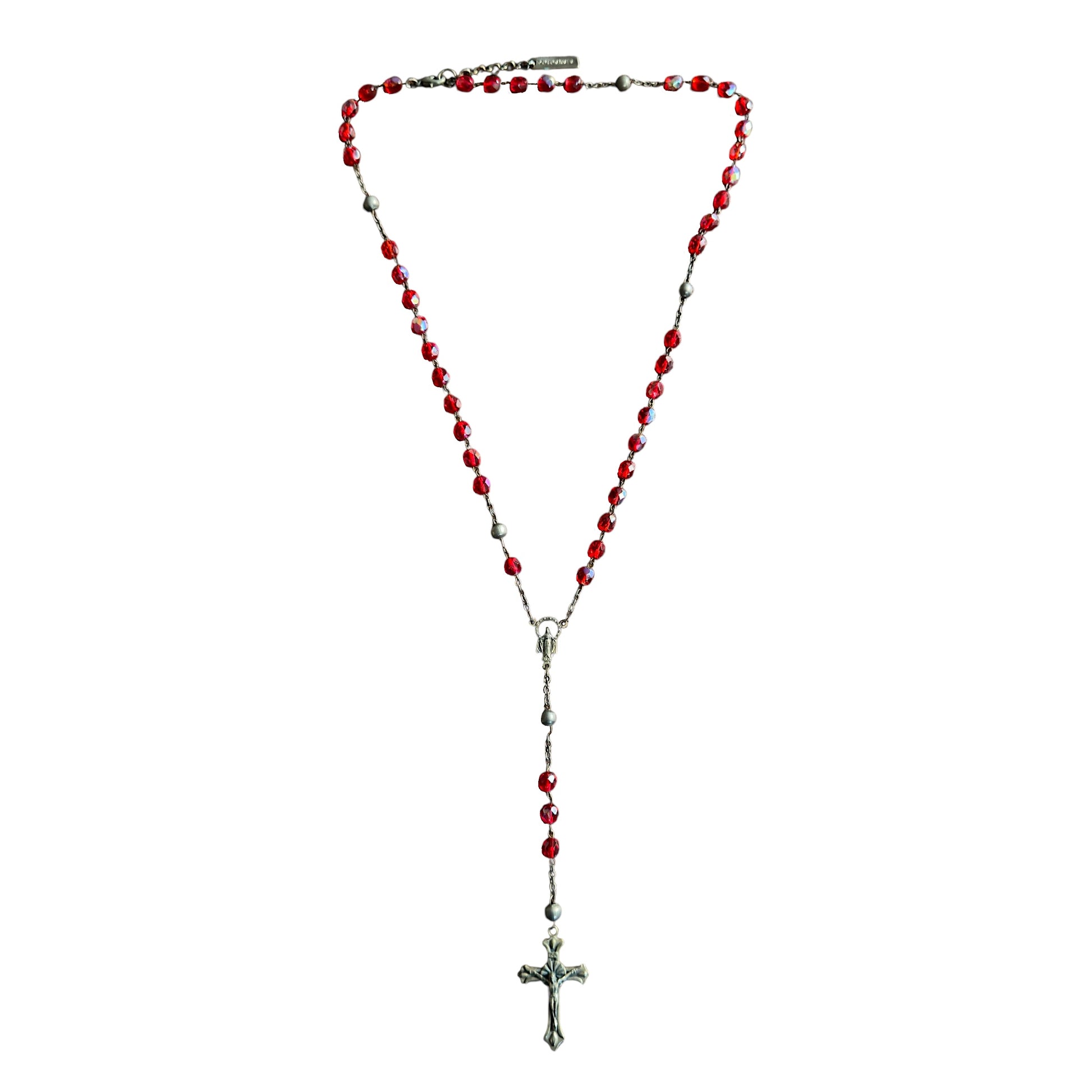 Dolce & Gabbana Red Crystal Rosary Alloy Cross Necklace