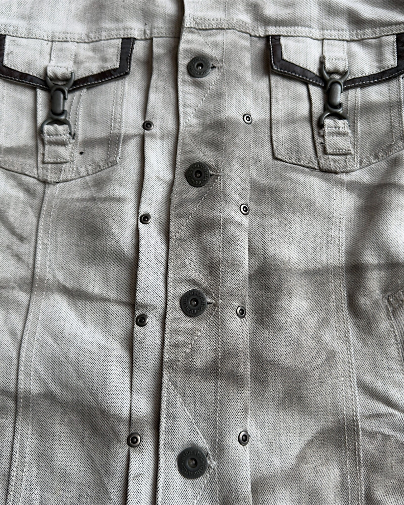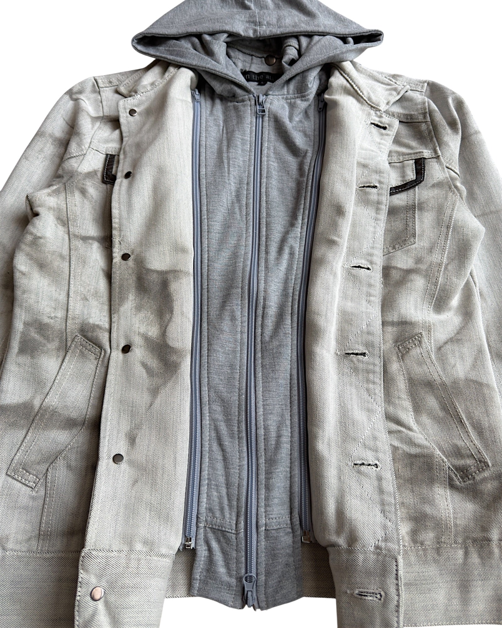In The Attic 2000s Clasp Pocket Layer Hooded Marble Wash Denim Jacket