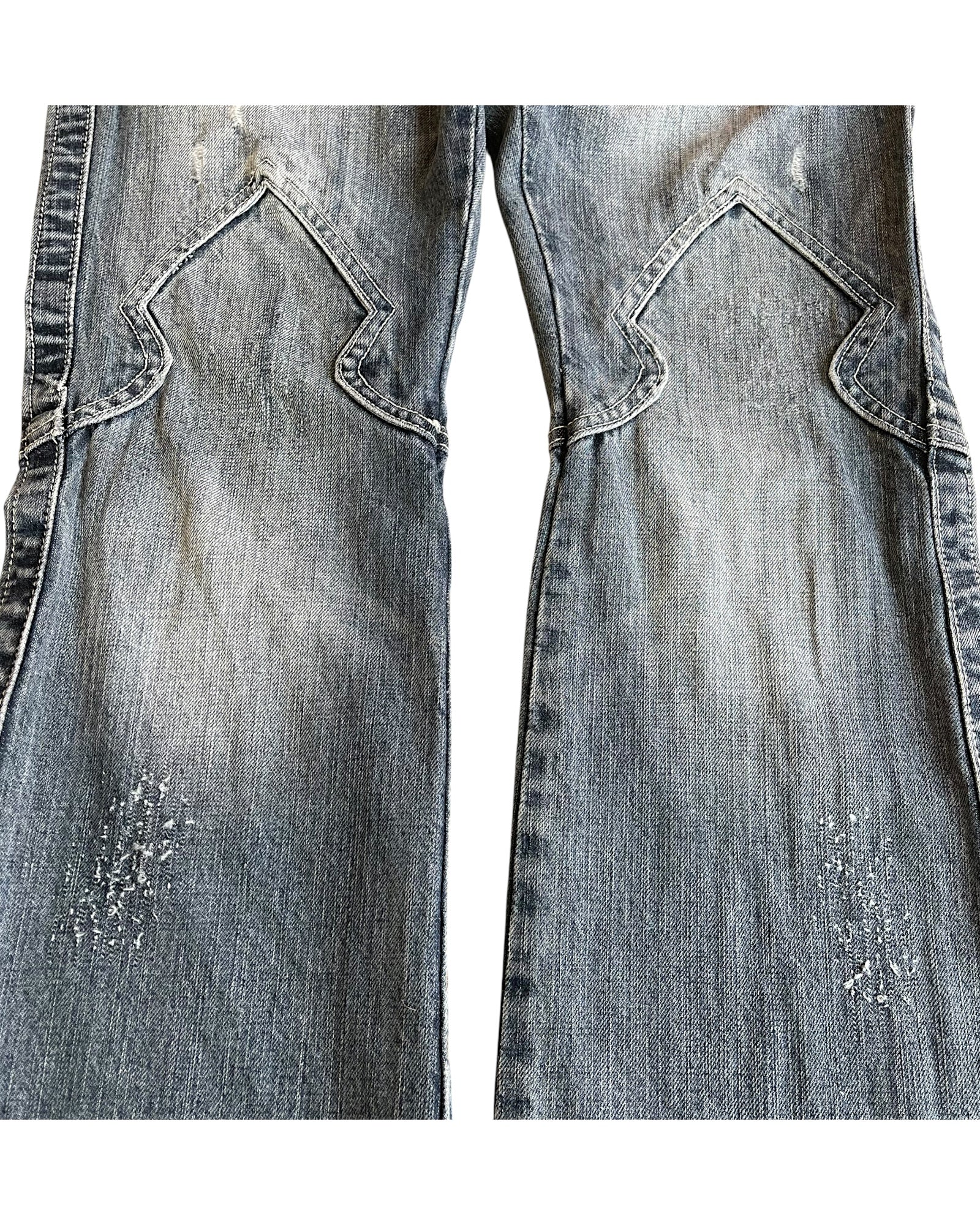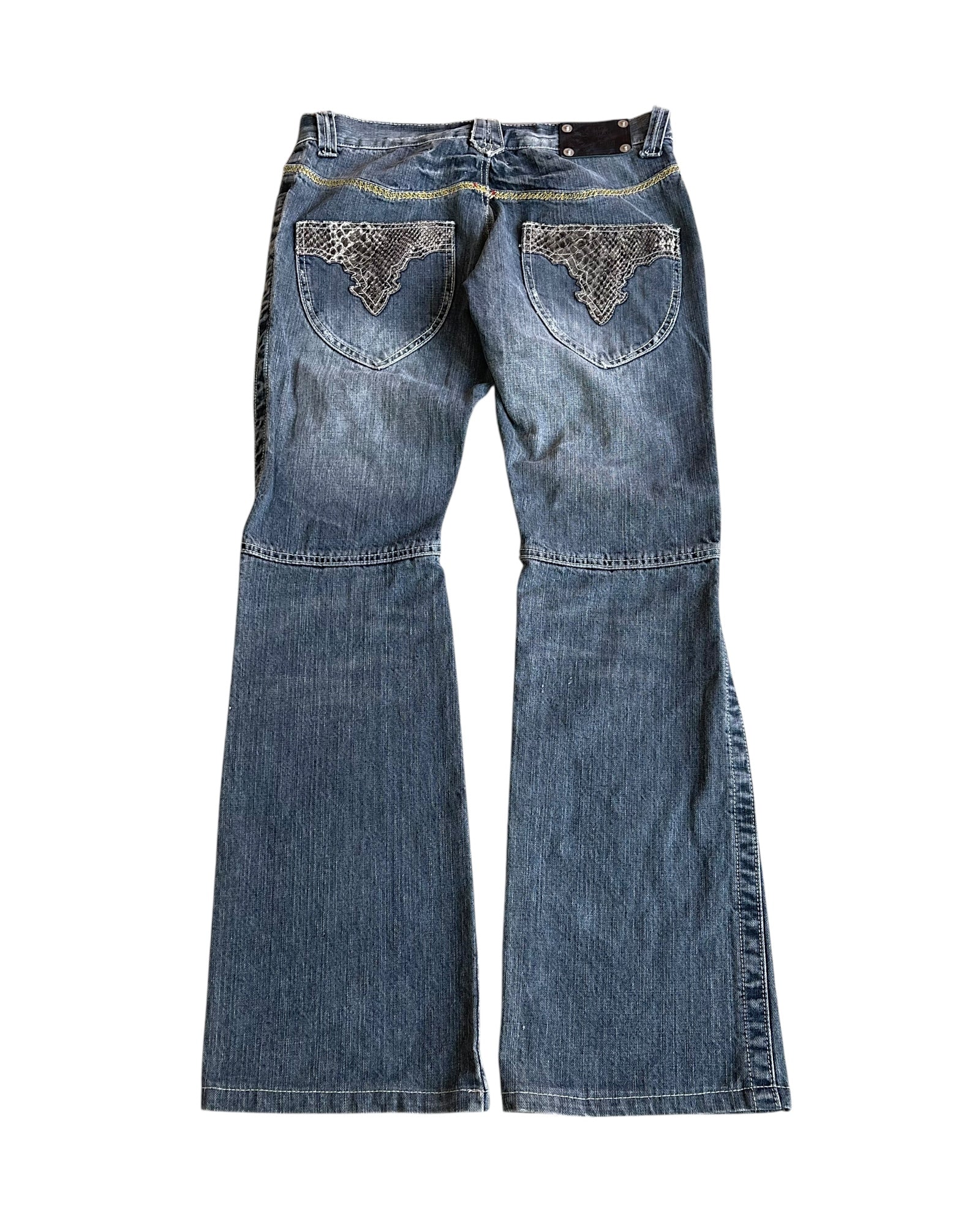Semantic Design Python Pocket Sword Flare Distressed Denim Jeans