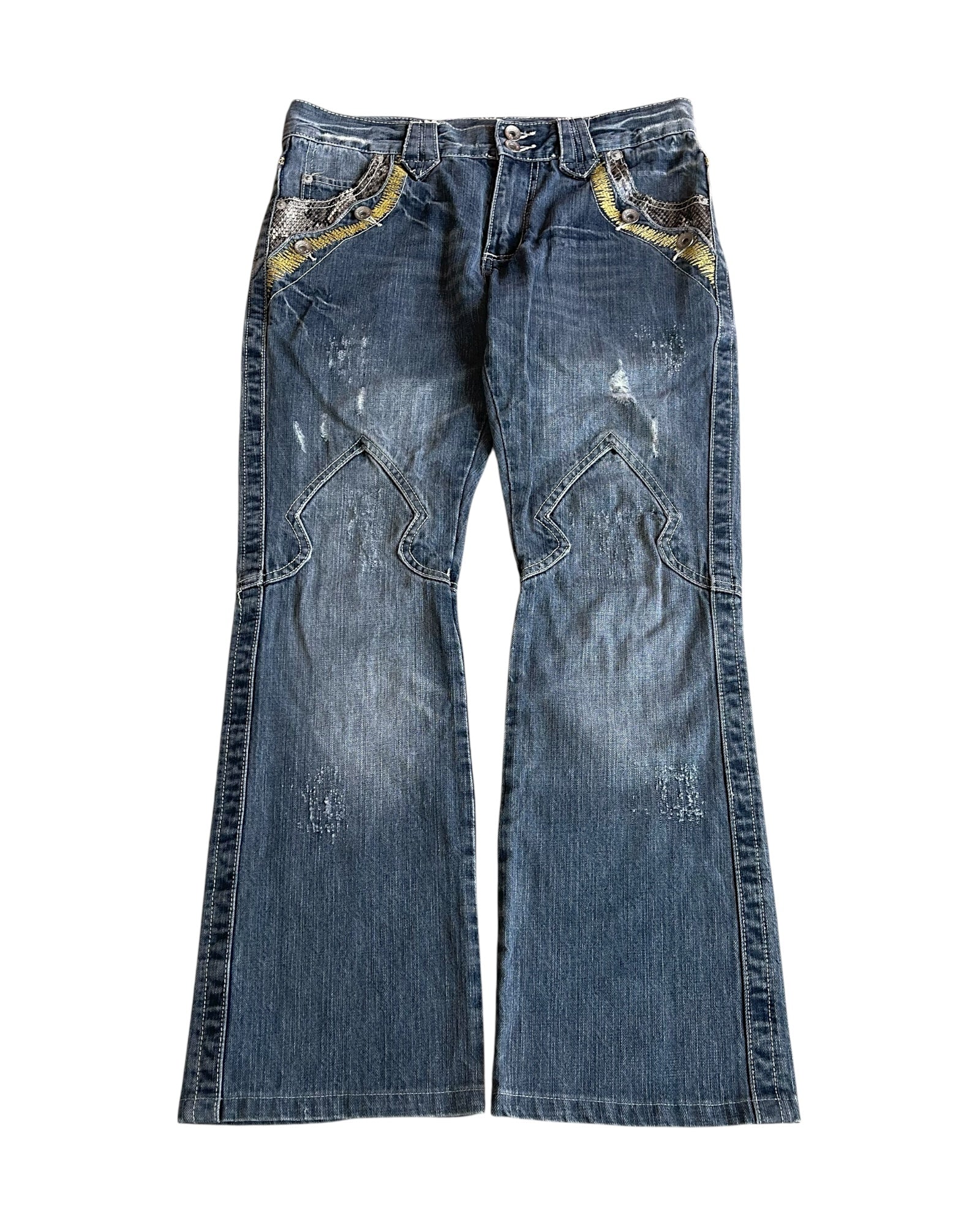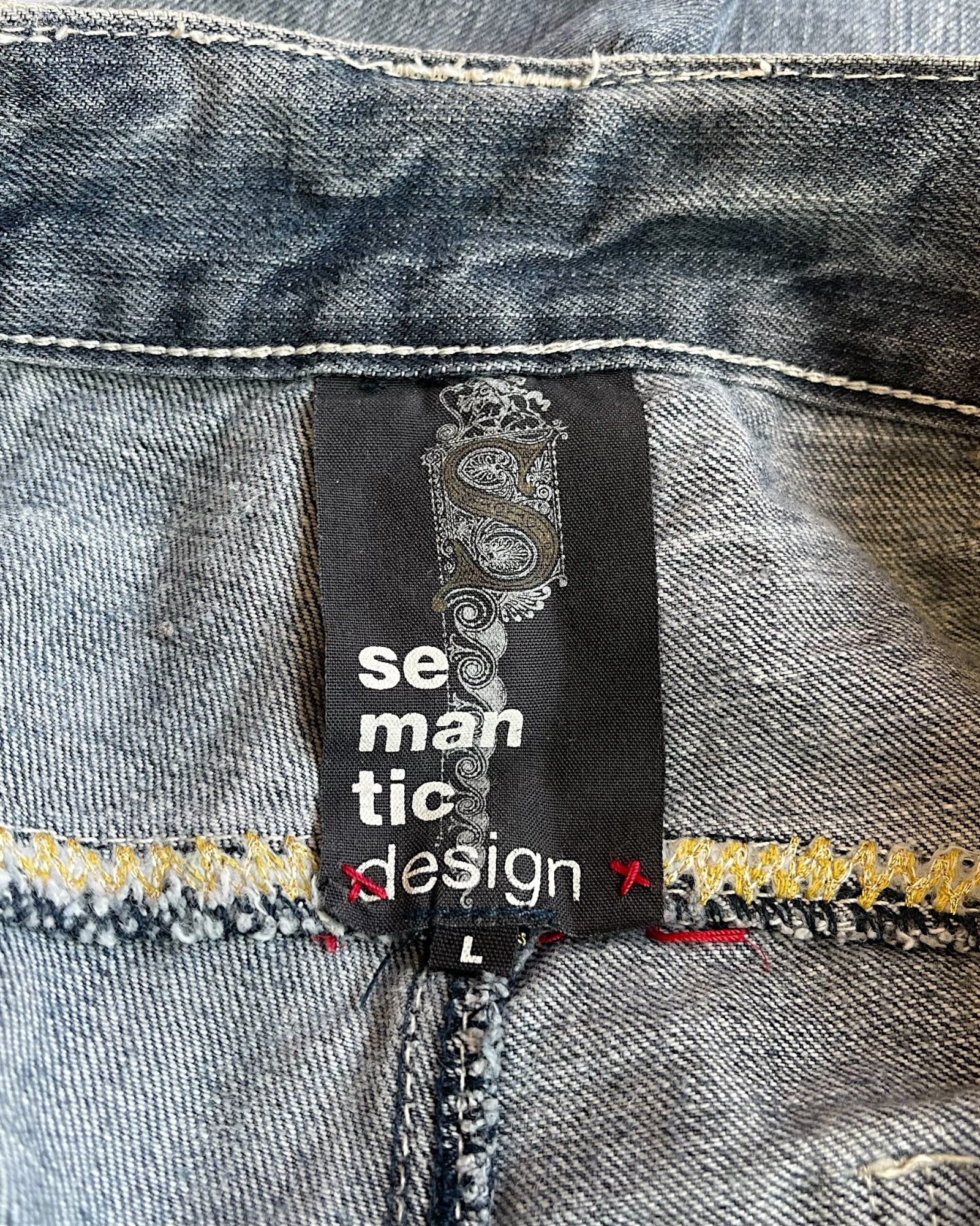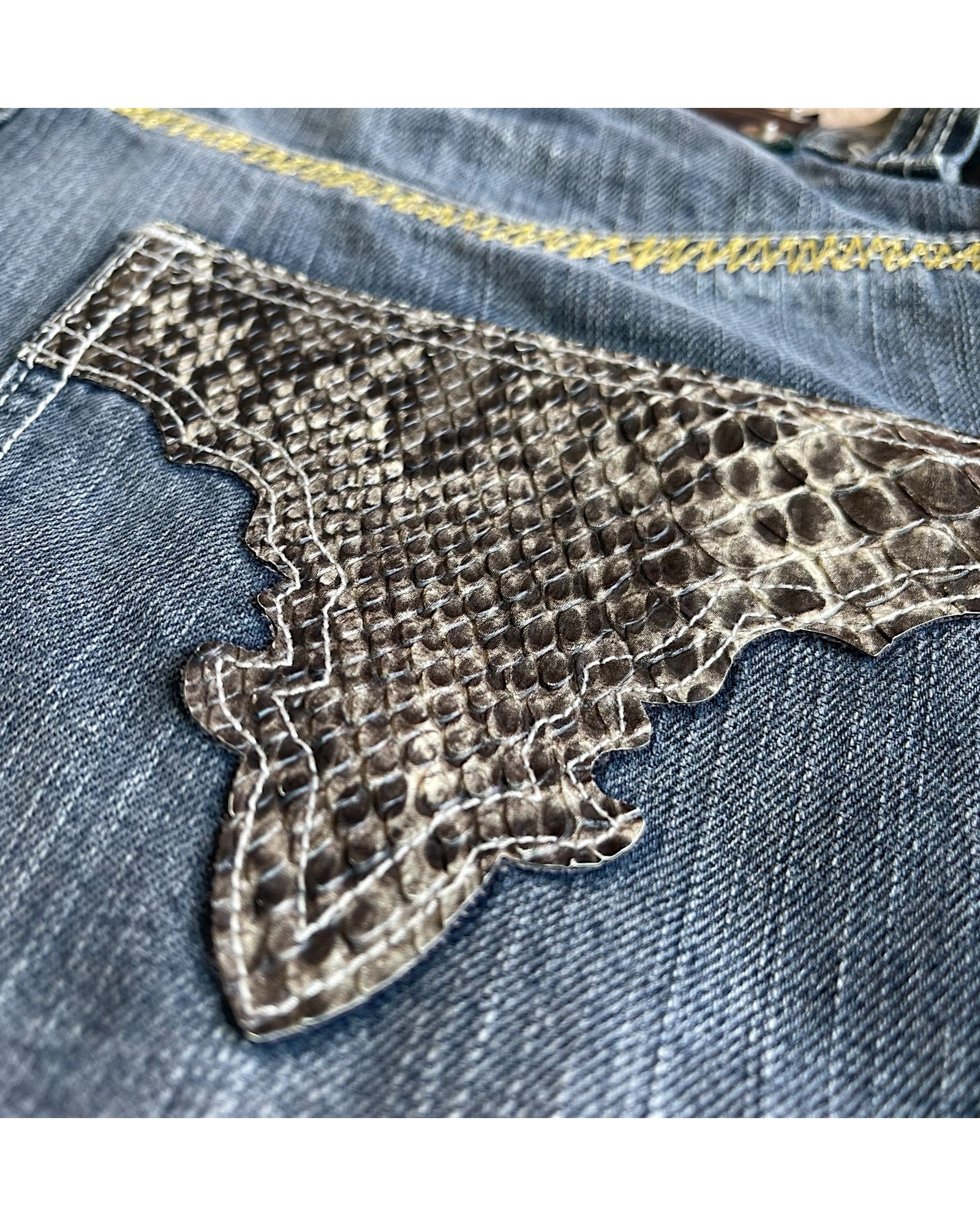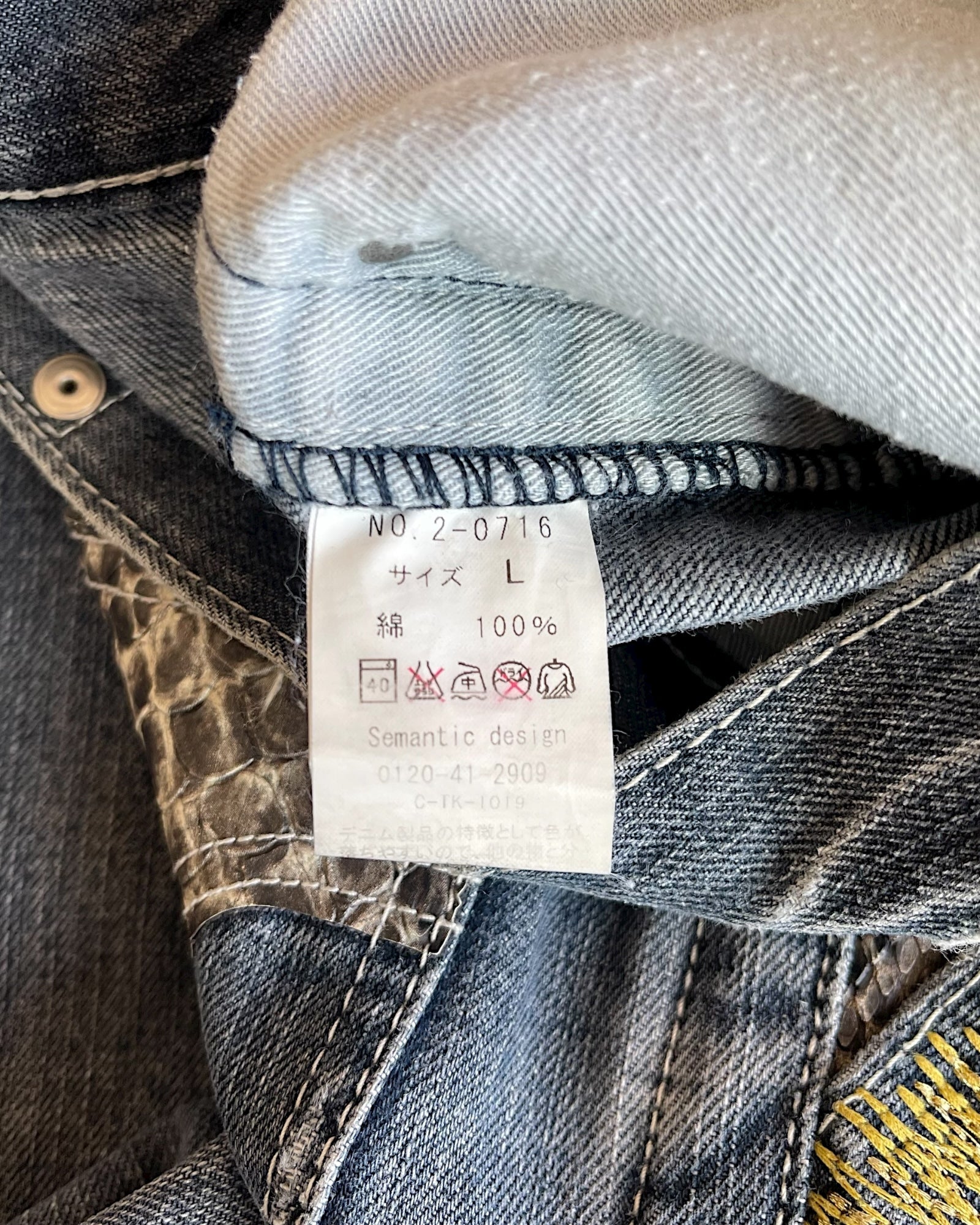 Semantic Design Python Double Pocket Sword Knee Flare Denim Jeans